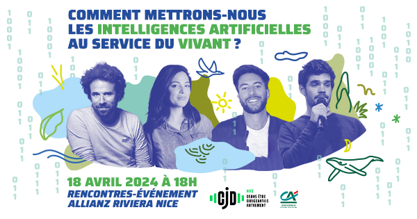 - 19h : intervention de Cyril Dion (poète et écrivain), Asma Mhalla (doctorat IA, intervenante à Polytechnique et sciences po), Arthur Auboeuf (100 000 entrepreneurs), Théo Alves da Costa (Data For Good) et Diana Sebbar (Directrice Pole 3IA Nice Côte d’Azur), débat et questions - réponses