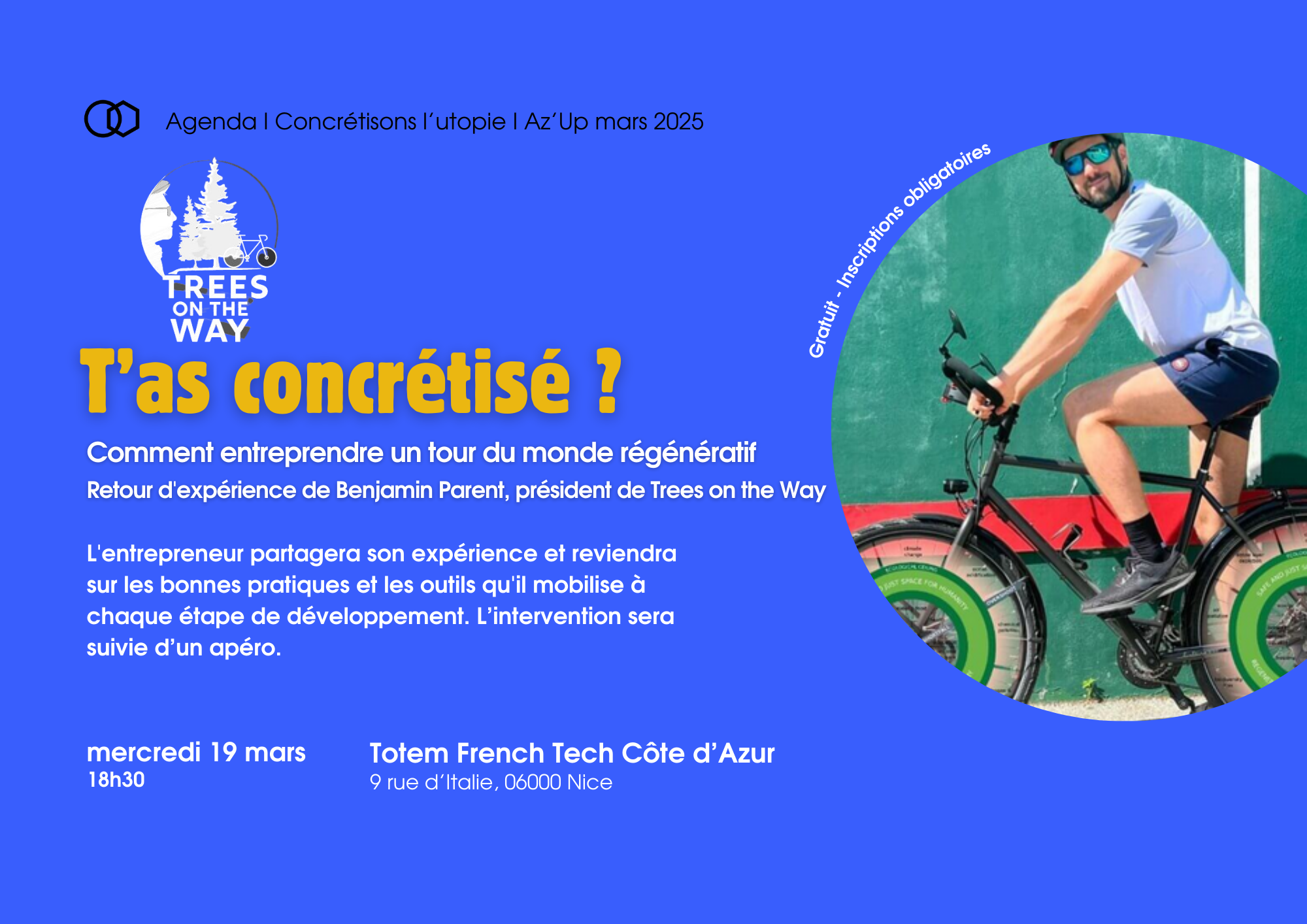 Plus qu'une masterclass, c'est l'opportunité d'échanger avec, pour et entre entrepreneurs.euses. de la communauté Az'up, incubateur de l'économie sociale et solidaire des Alpes-Maritimes.