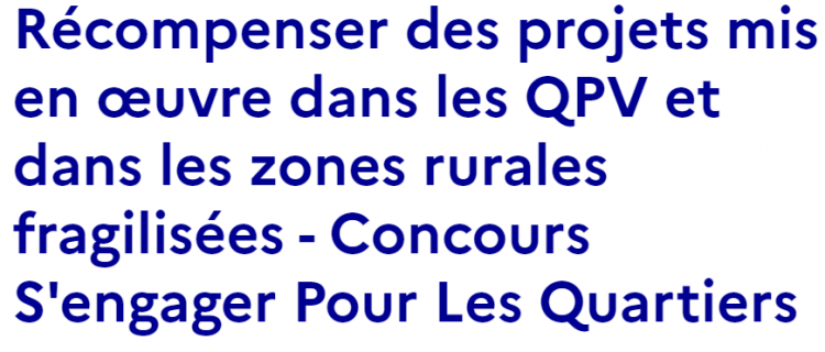 02 février AAP Récompenser des projets mis en œuvre dans les QPV et dans les zones rurales fragilisées