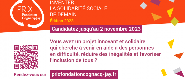 La Fondation Cognacq-Jay lance l’édition 2023 du Prix Fondation Cognacq-Jay qui s’adresse dorénavant essentiellement s’adresse aux projets en phase d’ÉMERGENCE : projets au stade de la bonne idée, de l’expérimentation initiale ou du lancement.