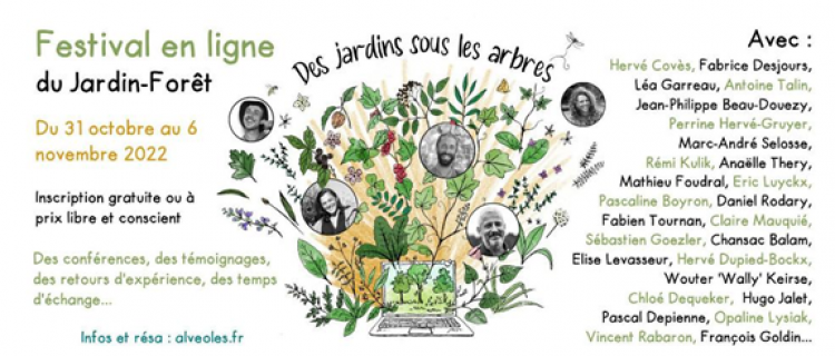 Si, il y a quelques années, certain.e.s d’entre nous se demandaient “à quoi ressembleront nos jardins avec le réchauffement climatique ?”, l’année 2022 est venue confirmer, si nous en avions encore besoin, que demain est déjà là. Dans ce contexte, nous sommes de plus en plus nombreuses et nombreux à entreprendre de faire évoluer nos pratiques jardinières pour donner + de place à l’arbre. Alors pour dynamiser et accompagner ce mouvement, l’équipe des Alvéoles organise du 31 octobre au 6 novembre prochain un festival en ligne 100% dédié au jardin agroforestier. Les inscriptions sont ouvertes (et gratuites), rejoignez-nous !