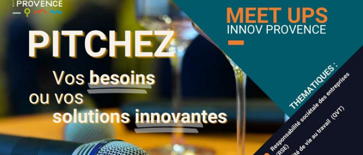 - Vous avez un besoin concret dans les domaines de la qualité au travail et de la responsabilité sociétale ? Venez pitcher votre besoin au Meetup InnovProvence pour maximiser vos chances de trouver les partenaires idéaux ! Déposez votre candidature de pitch pour un "besoin » Vous avez une solution innovante dans les domaines de la qualité au travail et de la responsabilité sociétale ? Venez pitcher votre solution au Meetup InnovProvence pour l’exposer devant des grands comptes ! Déposez votre candidature de pitch pour une "solution innovante »