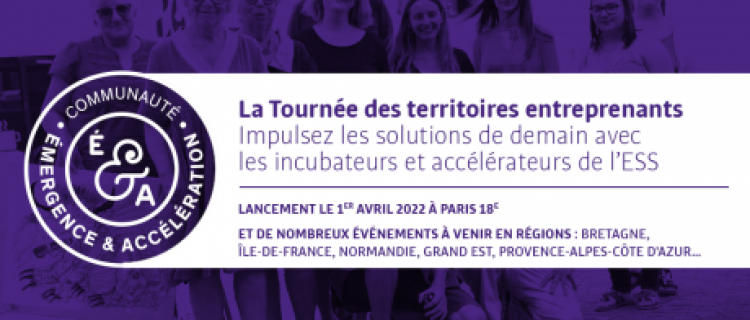 Du 1er avril au mois d'octobre, l'Avise et la Communauté Émergence & Accélération lancent la Tournée des territoires entreprenants, une série d'événements organisés par les incubateurs et accélérateurs de l'ESS, à travers la France.