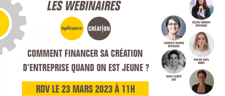 15 mars Webinaire BPI Financer sa création d'entreprise Comment financer sa création d'entreprise quand on est jeune ? La BPI propose le jeudi 23 mars à 11h un webinaire à destination des porteurs de projet qui cherchent des financements. Pour vous inscrire, c'est ici : inscriptions